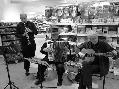 Vier Schauspieler und drei Musiker der "Karlsruher Spielgemeinde - Theater in der Kirche" haben sich am Freitag, dem 20. Januar 2012, im dm-Markt im Karlsruher Waldstadt-Zentrum mit einer Performance zur "IDEEN-INIATIVE-ZUKUNFT" vorgestellt und damit bekannter gemacht. Die Karlsruher Spielgemeinde wird im Rahmen des Projekts "GEMEINSAM GESTALTEN WIR DIE ZUKUNFT vom dm-Markt und der UNESCO als "Altersübergreifende Theatergruppe" gefördert. Weitere Hinweise sind zu finden im Internet unter: www.ideen-initative-zukunft.de Projekt-Nr.:20299 |