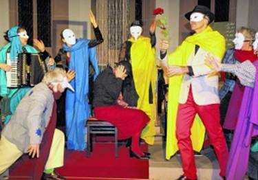 BIZARRER MASKENBALL im Wirtshaus: Triumphzug für eine neue Rosensorte namens "Rosalie". Foto: Lother |