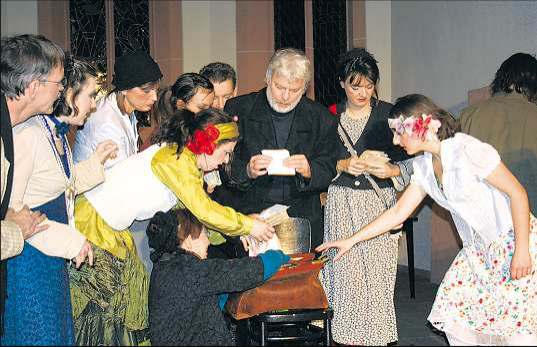 .. Amelies Tränen sind für die Zuschauer der Schlüssel zur Botschaft des Stücks: die Briefe Caroline Schlegel-Schellings reichen bis in die heutige Zeit. Es geht um Emanzipation und Selbstverwirklichung, ebenso auf persönlich- psychologischer Ebene wie auf politisch-gesellschaftlicher. In zehn Bildern entstehen sechs Lebenssituationen, von denen diese Briefe sprechen und die diejenige, die sie - zufällig - entdeckt, bis ins Mark erschüttern. Achim Quellmatz und Achim Pfeil verleihen mit Klarinette und Percussion der jeweiligen Stimmung Farbe und Tiefe... Es geht um die Rolle der Frau als Ehefrau und als Dienerin ihres Mannes. Eine alleinerziehende Mutter steht im Spannungsfeld zwischen persönlicher Aufopferung und gesellschaftlicher Erwartung. Die Abhängigkeit einer Person von ihrer Außenwirkung wird ebenso thematisiert wie die Sinnhaftigkeit philosophischer Diskussionen... Die Darsteller sind Wolfgang Nill, Gila Borcherding, Michael Draese, Swantja Wasmer, N. |