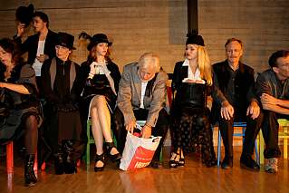 Wer die von Heide Harmsen geleitete Karlsruher Spielgemeinde kennt, weiß, dass der Weg das Ziel ist. In Gesprächen, Diskussionen und improvisationsübungen werden Texte und Szenen erarbeitet und Theaterbilder entworfen, die sich an die Erlebnisse, Hoffnungen und Ängsten der Mitglieder anlehnen und damit zum Mittel der Bewältigung persönlicher Freuden und Sorgen werden. Dabei entstehen dann alle ein bis zwei Jahre Aufführungen, die sich sehen lassen können. Denn unter einer kompetenten Regie lassen sich die Schauspieler zu harter Arbeit und überzeugenden Leistungen begeistern, die das Publikum unmittelbar ansprechen. Das jüngste Stück heißt Leben ist kein Verzicht und wurde am 20. November in der Emmaus- Kirche in der Waldstadt uraufgeführt. Ein paar bunt lackierte Stühle, eine Leiter, wenige elementare Requisiten, Vertreter verschiedener Generationen in zeitlos stilisierten Kostümen reichen aus, um ein Welttheater der kleinen Leute in den Altarraum zu zaubern, das Erinnerungen an mittelalterliche Moralitäten wecken mag. Auf die Bühne kommen vor allem die Verlierer der Gesellschaft: Landstreicher, Fehlgeleitete, Arbeitslose und Betrüger. Zu Beginn erklingen schrille anti-neoliberale Töne. Schließlich mündet die Kritik an den Verhältnissen in die mehr oder minder erfolgreiche Suche nach einem individuellen, poetisch verklärten Glück. Die Botschaft vor dem Kreuz ist klar zu hören. Sie wird unterstrichen durch diszipliniertes Spiel und eine bewusste Choreographie. Die durchgehende musikalische Begleitung durch Klarinette und Schlagzeug hält die Szenen zusammen. Der vorherrschend klagende Grundton geht nicht leicht aus den Ohren. Auch manche Zuschauer werden die reinigende Kraft des Theaters spüren. |