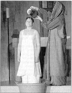 die Spielgemeinde eindringlich in der Szene der von allen mit Stricken gebundenen Heranwachsenden, an die zum Teil völlig überflüssige Forderungen gesellt werden. Kein Wort über den tiefen Sinn des Lebens oder den Wandel zum Erwachsenen und seinen Lebensaufgaben. .............. Kostüme, Masken und Requisiten waren zum überwiegenden Teil einfach, aber überzeugend in ihrer Symbolhaftigkeit. Die Texte wurden vom Ensemble zum großen Teil selbst geschrieben. Daher auch empfindet der Zuschauer eine starke Identität der Darsteller und des Theaterstückes. ........................ Unter Leitung der Theaterpädagogin Heide Harmsen haben die Darsteller eineinhalb Jahre diese Aufführung gestaltet und eingeübt. Im Oktober 1999 folgten Protestanten, Katholiken |