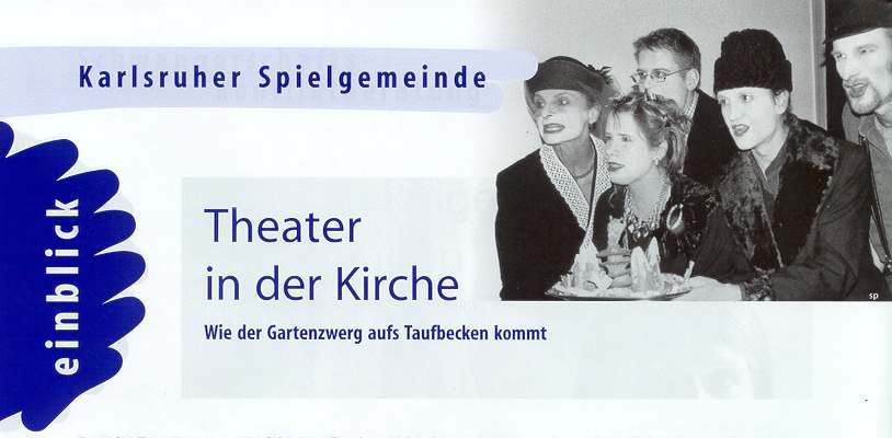 (Ingrid Vollmer/ivo-press) Auf dem Taufbecken steht ein grüner Gartenzwerg. Ein Mann spielt auf einem Akkordeon einen Flamenco. Durch den Mittelgang rennt eine junge Frau mit einem Teddybären in der Hand. Im Kirchenraum ist schwer etwas los. Die "Karlsruher Spielgemeinde" sorgt für ungewöhnliche Atmosphäre. |