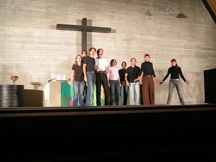 Die Karlsruher Spielgemeinde unter der Leitung von Heide Harmsen gab den Gästen mit verschiedenen Übungen Einblicke in die Grundlagen des Theaterspiels. Es war kein Theaterstück, das hier in der Kirche aufgeführt wurde. Die Besucher wurden vielmehr hinter die Kulissen geführt, hinein geführt in das Wesens des Schauspiels. Diese Einblicke bleiben den meisten verborgen. Wir bekamen viele Übungen gezeigt, die den Spielern hohe Disziplin und Selbstbeherrschung abverlangen, damit ein Schauspiel erst zu dem werden kann, was Theaterbesucher dann auf der Bühne sehen. Eine tolle Leistung!... Hans-Peter Jaschke |